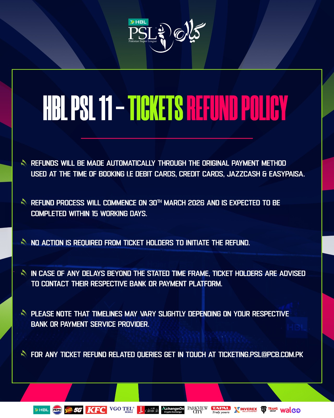 The official nomenclature of the league is HBL PSL; Media houses are advised to use the correct nomenclature in all texts, headlines and bulletins Lahore, 02 April 2026: Fakhar Zaman appealed the decision of the Match Referee to suspend him for two HBL PSL matches for breaching Article 2.14 of the applicable Code of Conduct for … Read more